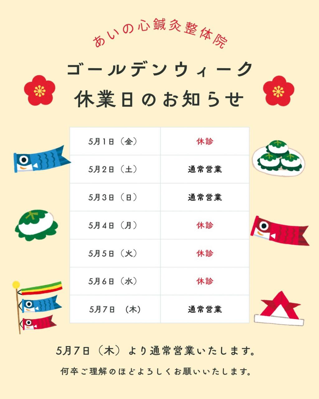 ゴールデンウイークのお知らせです^^