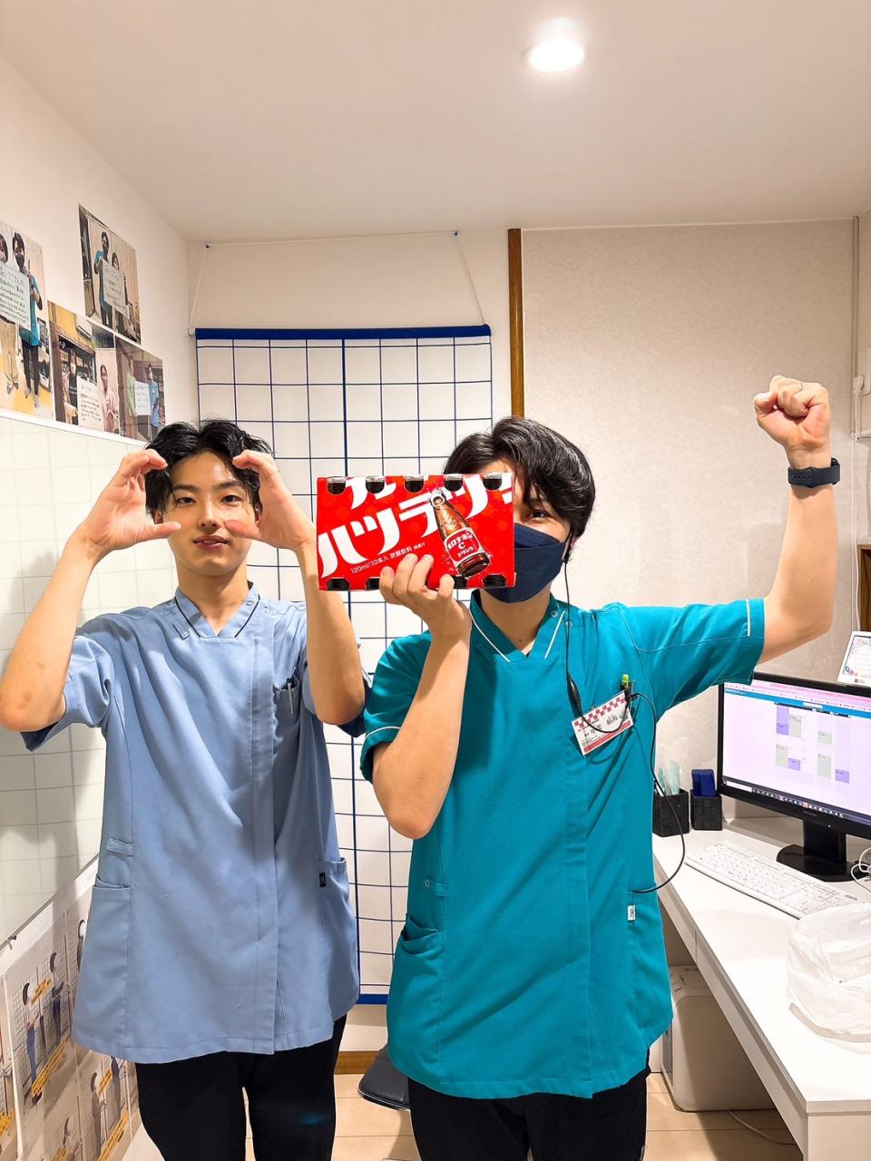 便秘で悩んでいたスタッフに施術をする市原先生!