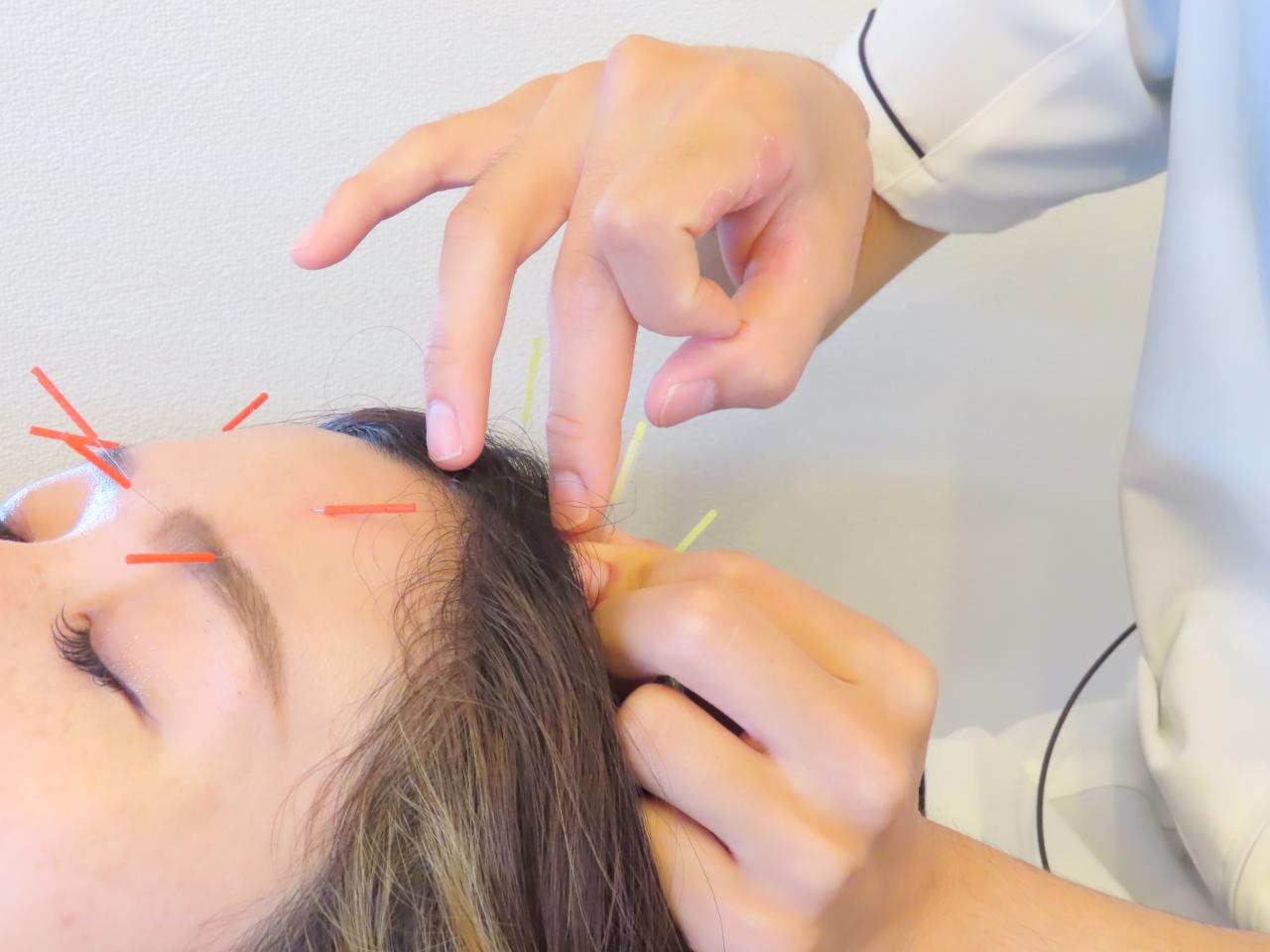 あいここではお顔の硬くなっている筋肉だけではなく、頭皮にも鍼をすることでリフトアップの効果が期待できます♪